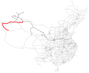 The G3012 Turpan–Hotan Expressway (Chinese: 吐鲁番—和田高速公路, Uyghur: تۇرپان-خوتەن يۇقىرى سۈرئەتلىك تاشيولى), commonly referred to as the Tuhe Expressway (Chinese: 吐和高速公路), is a Chinese expressway that connects the G30 Lianyungang–Khorgas Expressway at Xiaocaohu, in Toksun County, Turpan, with China National Highway 315 in Lop County, Hotan Prefecture. The expressway is a spur of the G30 Lianyungang–Khorgas Expressway and is completely in Xinjiang. It is 1,931 kilometres (1,200 mi) in length, which is unusually long for an expressway under a single sub-national administration, being vastly longer than Interstate 10 in Texas.