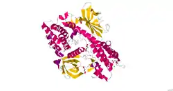 A structure of GAK was determined using X-ray diffraction to a resolution of 2.10 Å.[8]