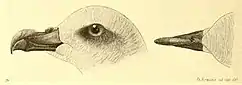 Illustration of the head of Pterodroma lessoni. Here, the hooked bill and external tubular nostrils are also found in the Galápagos petrel.[6]