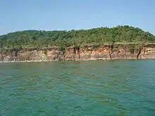 The Chambal and its tributaries drain the Malwa region of northwestern Madhya Pradesh, while its tributary, the Banas, which rises in the Aravalli Range, drains southeastern Rajasthan. At its confluence with the Yamuna, the Chambal joins four other rivers – the Yamuna, Kwari, Sind, and Pahuj – at Pachnada near Bhareh in Uttar Pradesh, at the border of the Bhind and Etawah districts.[8][9] The river is drained by a rain-fed catchment area with an average annual rainfall of 860 millimetres (34 in), a temperature range of between 2 °C (36 °F) and 40 °C (104 °F), and a relative humidity ranging from 30% to 90%.[7]