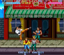 ![]() Japanese arcade flyer of Gang Wars. Notice that Jackie (left) resembles Jackie Chan. | |