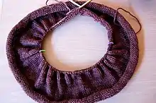 In knitting, a gather draws stitches closer together within a row of knitting. Common methods include: