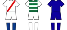 ![]() The typical colours worn by the historic three teams involved in the Gdańsk Derby Gedania (left), Lechia (center), Stoczniowiec (right) | |