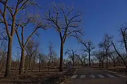 In May 2011, the park was inundated with floodwaters from the Missouri River, with water levels reaching their peak of 19.24 feet (6 m) on July 1, 2011. Once the flood had abated, Bismarck Parks and Recreation District commissioned a visual survey of the damage caused by saturated soil conditions and wind storms. Over 1,200 trees had been toppled or partially uprooted. The report concluded that replanting should increase the diversity of tree species to reduce the losses if an insect or disease were to enter the park, and also ensure introduction of species with known tolerance of flooding.[7] Campgrounds were closed for the season while the cleanup took place.[9] By November 2011, around three-quarters of damaged and fallen trees had been removed by forestry crews.[10]