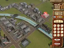 As time progresses, the player enlarges the empire by building new factories, mines, and worker housing. The addition of infrastructure such as water and electricity increases productivity. Later, worker amenities such as libraries and schools become available to raise employee morale.[6]