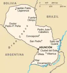 This is a list of the extreme points of Paraguay, the points that are farther north, south, east or west than any other location.