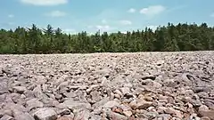 A small slice of Paleozoic rocks, mostly carbonates, exists in Buckingham Township. These rocks lie north of the Furlong fault which is an offshoot of the larger Chalfont fault.[11] Buckingham Mountain rises south of the valley and comprises quartzite. The other ridge is less prominent and is underlain by the conglomerates of the Stockton Formation. Karst is a localized problem in this area.
