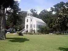 The three commissioners met forty "people of the main" at Mill's ferry on the St. Marys and arranged for a general meeting of the men of the region to be convened at Waterman's Bluff in three weeks.[41] Clarke and the other two commissioners went to the meeting and offered a "plan of reconciliation and re-establishment of order",[45] proposing that the malcontents accept Spanish rule under a plan that divided the territory between the St. Marys and St. Johns into three self-governing districts, to be known as Upper St. Marys, Lower St. Marys, and Nassau (Amelia Island). Each district was to have a magistrate's court and its own militia, the officers to be elected by the people. The group accepted these conditions, and Clarke's plan was adopted.[41]