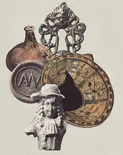 The Visitors' Center contains artifacts recovered from the burned-down Washington house, including a bowl, clay figurine, wine bottle seal belonging to Augustine Washington, wine bottle, and keyhole plate.