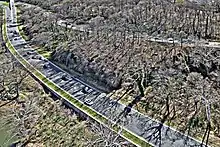The northern sections of the Parkway were mostly completed in the 1950s-1960s.[39] The portion of the parkway from Glebe Road to I-495, was built primarily to provide access for workers at the new Central Intelligence Agency headquarters in Langley, Virginia, in 1959.[44] The portion of the parkway just north of the Key Bridge was considered a model of modern highway design, and it was featured in many scholarly papers, engineering journals, and textbooks of the day.[45] The Capper-Cramton Act received significant amendments in 1946, 1952, and 1958, both funding and terminating significant portions of the unbuilt parkway.[38] The most significant changes came when Congress declined to fund construction of the segments from Fort Washington to the District of Columbia, from I-495 in Virginia to the Great Falls, and from MacArthur Boulevard/Carderock north to the Great Falls. Significant opposition to these segments emerged from the Izaak Walton League, the Wilderness Society, and other groups, which argued that the environmental damage caused by these segments would be too severe to justify their construction.[46]