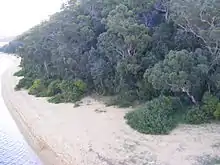 • Flora – The river side predominantly consist of mangrove swamps, occupying 24 hectares on the national park, and salt marshes occupying 11 hectares of the national park. However, aerial photo analysis suggest between 1966 and 1998 unauthorised vehicles, BMX bikes, and motorised dirt bikes have reduced and declined these occupied areas of mangrove swamps and salt marches.[9] The most common vegetation found throughout the park is Sydney Hinterland Exposed Sandstone Woodland, covering 293 hectares,[10] characterised by eucalyptus trees 10–25 metres tall and small sclerophyll shrub. However, other floral habitats can be found in the national park as well, such as, Littoral Rainforests, Sydney Coastal Heaths, Coastal Freshwater Lagoons, and Coastal Floodplain Wetlands. Prioritised tree species that are under threat identified in the park are swamp mahogany and red gum. These are flowering tree species which nurture and feed animals species such as the grey-headed flying fox and little lorikeets. They are under-threat due to high public disturbance, and are not widely dispersed within the park. Moreover, there has been a reduction in the numbers of hollow-bearing trees with in the park, which shelter and allow for the breeding of Sittella bird species.[1]