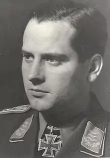 On 5 December 1941, Galland was appointed General der Jagdflieger (General of Fighters). In consequence of Galland's advance in command responsibility, Schöpfel succeeded him as Geschwaderkommodore of JG 26 on 6 December and Hauptmann Josef Priller became the new Gruppenkommandeur of III. Gruppe.[45] Three days later, he was awarded the German Cross in Gold (Deutsches Kreuz in Gold) on 9 December.[3] In December, he was also promoted to Major (major).[26]