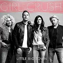 "Girl Crush" is a song written by Lori McKenna, Hillary Lindsey and Liz Rose, and performed by American country music group Little Big Town. It was released on December 15, 2014 as the second single from their sixth studio album, Pain Killer.[1] The song received mostly positive reviews from music critics, won five music awards, including two Grammys (Best Country Duo/Group Performance and Best Country Song), reaching number 3 on the Country Airplay charts and number one on the Hot Country Songs chart, ended up being the second-most played song of 2015 on the format, and is certified Quintuple Platinum in the US.