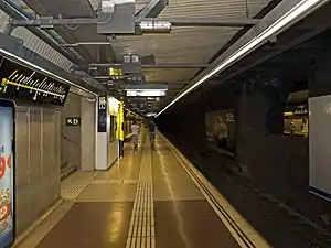 Girona is a Barcelona Metro station located in Carrer de Girona, underneath Carrer del Consell de Cent between Carrer del Bruc and Carrer de Bailèn, in Dreta de l'Eixample, part of the Eixample district of Barcelona, Catalonia, Spain. It is served by L4 (yellow line). The station was inaugurated in 1973 along with the other stations from Urquinaona to Joanic.