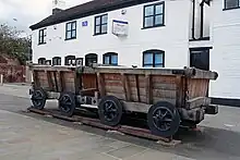 The line was a 3 ft 6 in (1,067 mm) gauge plateway, with cast iron plates on stone blocks. Wagons with plain wheels could run on the plates and were guided by an upstand on the plates. The route was single track, but passing places were provided at four to the mile, or more frequently. It appears that more passing places were added later, no doubt in response to higher traffic densities. A marker inscribed "D" was located halfway between every pair of passing places. If two loaded "trains" met, the one that had already reached the D marker had priority and the other had to reverse back. If one was an empty movement, it had to draw back. Two laden trams were considered the limit for a horse to draw. The round trip of seventeen miles on the line was considered to be a day's work. A short length of double track was provided in the dock area at Gloucester.[1][2][4]