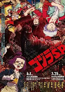 Godzilla Singular Point (Japanese: ゴジラ S.P <シンギュラポイント>, Hepburn: Gojira Shingyura Pointo) is a Japanese anime television series directed by Atsushi Takahashi and written by Toh EnJoe. Produced by the animation studios Bones and Orange and licensed by Netflix, the series premiered on March 25, 2021, on Netflix in Japan, and on Tokyo MX and other channels on April 1 to June 24, 2021. The series is part of the Godzilla franchise and features monsters from its Shōwa era (1954–1975). In 2023, EnJoe suggested that a second season of the series may be produced.[1]