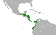 It resides from sea level to 1,500 m (4,900 ft) altitude in the canopy of dense forests and semi-open areas like clearings, second growth and well-vegetated gardens.
