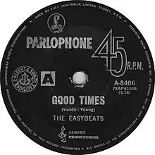 "Good Times" (aka "Gonna Have a Good Time") is a song by the Australian rock band the Easybeats, written by George Young and Harry Vanda. It was released in June 1968 on their album Vigil, and as a single in July 1968 through Parlophone. It features guest vocals by Steve Marriott of Small Faces, and piano by Nicky Hopkins. The original Easybeats recording reached #22 in Australia. When broadcast by BBC radio, it was reportedly heard by Paul McCartney on his car radio; McCartney apparently rang the station immediately to request a repeat playing.[1]