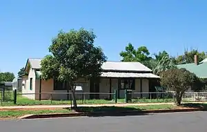 In May 1934 Carrathool Shire Council voted to remove the shire offices from Carrathool to Goolgowi. The decision was made because Carrathool township was located at the south-west corner of the large shire, whereas Goolgowi was in a more central position.[7] At the time the decision was made "there was no building at Goolgowi which would meet the requirements of the Council". Within three days, however, the residents of Goolgowi had drawn up a plan for a new building which was put before the council. The plans were approved "with some modifications and additions" and "an agreement entered into for the occupancy of the new building". The building was erected within ten weeks on land owned by local resident Stephen Hicks and the new council chambers were opened in July 1934.[8] The council chambers were initially rented from the owner of the property for an annual rent of £78. In December 1948 the council voted to purchase the building from Hicks for £750.[9]