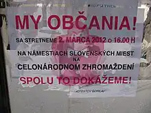 - ↑ "'Gorilla Protest' takes place in Bratislava". The Slovak Spectator. 28 January 2012. Retrieved 26 May 2012.