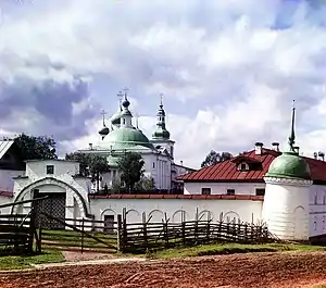 The Goritsy Monastery of Resurrection (Russian: Воскресенский Горицкий монастырь) is a Russian Orthodox convent (female monastery) in the village of Goritsy, Kirillovsky District, Vologda oblast, Russia. The convent is 15 kilometres (9.3 mi) north of the town of Kirillov, Kirillovsky District, which was the site of one of the historically most important (as well as wealthiest) male monasteries in Russia, and to which Tsar Ivan the Terrible, discussed below, had planned to retire.[1] Since the 1970s, the Kirillo-Belozerksy museum-zapovednik of History, Art, and Architecture has operated parts of the Goritsky complex. Parts of Goritsky convent were reopened for religious purposes two decades later, and as of 2011 Goritsky was one of the four acting monasteries in Vologda Oblast, and the only one for religious women.