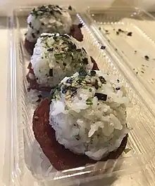- ↑ It may have even existed before the more widely known SPAM musubi, as SPAM was created in 1937 by Hormel.