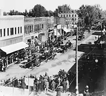 A parade in downtown Gothenburg from 1916. As you can see 1st State Bank's location and is where the bank still stands today.