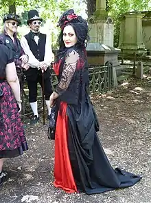 Victorian goth is a modern fashion movement that interprets and redefines certain aspects regarding fashion of the Victorian Era.[30] The Victorian Era is notable for having big dresses and elegant hair, and these elements have made subsequent integration into modern day main stream gothic fashion. With early inspiration taken from medieval settings that were used by Edgar Allen Poe, in addition to late-Victorian examples of gothic fashion that are used in Bram Stoker's Dracula.[31]
