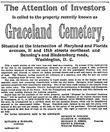 - ↑ "Orders Sale of Cemetery". The Washington Post. January 10, 1913. p. 14.