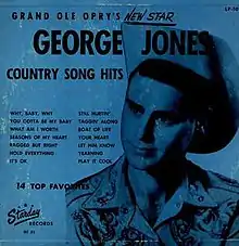 Starday Records was an independent record label in Houston that was co-founded by Jones's producer and mentor H. W. "Pappy" Daily and Jack Starnes. Jones's first recording, the self-penned novelty "No Money in This Deal", had appeared in February 1954 and in 1955 he scored his first hit with "Why Baby Why", which would be the lead track on Grand Ole Opry's New Star. The title reflected Jones's 1956 appearance on the Grand Ole Opry, which solidified his emerging status in the country music world.[2] Extant copies of Grand Ole Opry's New Star are rare, and collector's prices are $400 and up.[3]