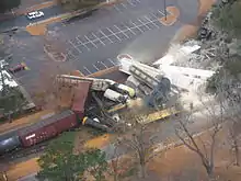 The Graniteville train crash was an American rail disaster that occurred on January 6, 2005, in Graniteville, South Carolina. At roughly 2:40 am EST, two Norfolk Southern trains collided near the Avondale Mills plant in Graniteville.[1] Nine people were killed and over 250 people were treated for toxic chlorine exposure. The crash was determined to be caused by a misaligned railroad switch.[2]
