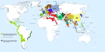 Distribution of colonial empires by the end of the 18th century