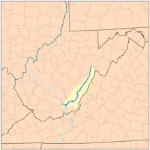 The Greenbrier River is a tributary of the New River, 162 miles (261 km) long,[2] in southeastern West Virginia, in the United States. Via the New, Kanawha and Ohio rivers, it is part of the watershed of the Mississippi River, draining an area of 1,656 square miles (4,290 km2).[2] It is one of the longest rivers in West Virginia.[4]
