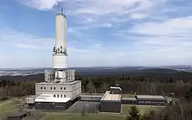 The Kornberg summit is dominated by the military surveillance tower built in 1973 for the Bundeswehr and taken into service in 1976. During the Cold War it acted as a listening post, picking up military radio traffic by the land forces of the Warsaw Pact. The tower was run by the 946th Signals Company (Fernmeldekompanie 946), which was stationed in Hof/Saale. After the withdrawal of Soviet troops from the former East Germany in 1994 the tower was taken out of service and has since been used by the Fraunhofer-Institut für Integrierte Schaltungen from Erlangen.