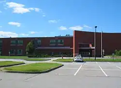 The regional school district was established in 1967[21] with the high school located on Main St. in Groton. In 1997, the school adopted 4x4 block scheduling.[22] In 1999, the "new gym" at the Main Street campus was renovated and renamed as the Peter Twomey Youth Center (PTYC) in order to honor a then recently deceased student. The PTYC is now "...a self-supporting facility that provides space for youth athletic leagues, adult education, and youth groups in Groton and Dunstable."[23] With the student population expanding from 370 in 1993[24] to its current levels, a new building was needed. In 2003 at cost of $35 million,[25] the high school relocated to its current location near the border between the two towns it serves.