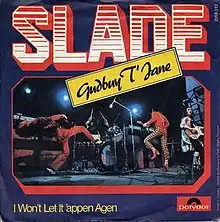"Gudbuy T'Jane" is a song by the British rock band Slade, released in 1972 as the second single from their third studio album Slayed? It was written by lead vocalist Noddy Holder and bassist Jim Lea, and produced by Chas Chandler. It reached No. 2 in the UK, remaining in the charts for thirteen weeks.[2] The song was certified UK Silver by BPI in 1973.[3] In the United States, the song reached No. 68.[4] It was also included on the band's 1973 compilation album Sladest.
