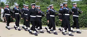 ![]() The guard of HMS Forward parading at the National Memorial Arboretum, Alrewas, on Armed Forces Day 2010. | |