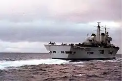 - ↑ This sum, which was to be payable to two instalments, £90 million in 1982 and the remaining £85 million in 1983, was the direct purchase cost for the ship itself. Spare parts, support costs and a pre-sale refit were expected to push total costs to £295 million.[20]