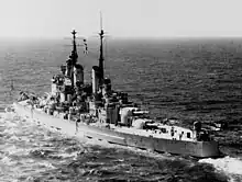 Vanguard's first task after completing her sea trial at the end of 1946 was, early the next year, to convey King George VI and his family on the first Royal Tour of South Africa by a reigning monarch.[5] While refitting after her return, she was selected for another Royal Tour of Australia and New Zealand in 1948. This was cancelled due to King George's declining health and Vanguard briefly became flagship of the Mediterranean Fleet in early 1949. After her return home in mid-1949, she became flagship of the Home Fleet Training Squadron. Throughout her career, the battleship usually served as the flagship of any unit to which she was assigned. During the early 1950s, Vanguard was involved in a number of training exercises with NATO forces. In 1953 she participated in Queen Elizabeth II's Coronation Review. While she was refitting in 1955, the Admiralty announced that the ship was going to be put into reserve upon completion of the work. Vanguard was sold for scrap and was broken up beginning in 1960.