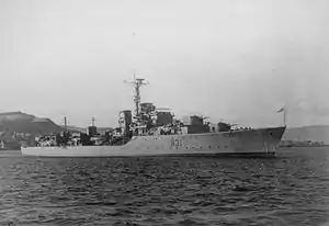 HMS Vigo was a Battle-class destroyer of the Royal Navy. She was named after the Battle of Vigo, which took place in 1702 during the War of Spanish Succession between a British-Dutch Fleet and the French, and which ended in a victory for the British. Vigo was built by Fairfield Shipbuilding and Engineering Company of Govan. She was launched on 27 September 1945 and commissioned on 9 December 1946.