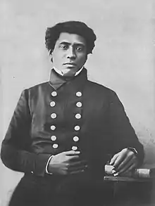 The king's secretary and one of his favorites was a handsome young man of frank, pleasant countenance and good manners; he wore European dress and spoke English quite well.[8]