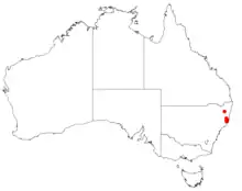 Hakea archaeoides is restricted to Taree and Wauchope areas in north-eastern New South Wales growing in wet sclerophyll forest and rainforest on hill slopes.[3]