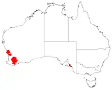 - ↑ Wilson (ed), Annette; Barker, Robyn M.; Haegi, Laurence A.; Barker, William R. (1999). "Flora of Australia" Vol.17B-Proteaceae 3 Hakea to Dryandra. Canberra/Melbourne: ABRS-Department of Environment and Heritage. ISBN 0-643-06454-0.