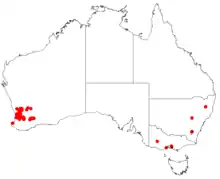 - ↑ Haegi, L.; Barker, W. R.; Barker, R. M. (1999). Flora of Australia Vol 17B-Proteaceae 3 Hakea to Dryandra (PDF). Canberra/Melbourne: ABRS-Department of Environment & Heritage. p. 395. ISBN 0-643-06454-0.