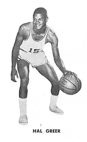 Harold Everett Greer (/ˈhæl ˈɡrɪər/ HAL GREER; June 26, 1936 – April 14, 2018) was an American professional basketball player. He played for the Syracuse Nationals / Philadelphia 76ers of the National Basketball Association (NBA) from 1958 through 1973. A guard, Greer was a 10-time NBA All-Star and was named to the All-NBA Second Team seven times. He was named to the 50 Greatest Players in NBA History, the NBA 75th Anniversary Team, and his uniform number was among Philadelphia 76ers retired numbers. Greer is a member of the Basketball Hall of Fame.