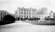 Haldon House (pronounced: "Hol-don") on the eastern side of the Haldon Hills in the parishes of Dunchideock and Kenn,[2] near Exeter in Devon, England, was a large Georgian country house largely demolished in the 1920s.[1] The surviving north wing of the house, comprising the entrance front of the stable block, consists of two cuboid lodges linked by a screen pierced by a Triumphal Arch,[3] with later additions,[1] and serves today as the "Lord Haldon Hotel".[4] The house was originally flanked by two such paired pavilions, as is evident from 19th century engravings.