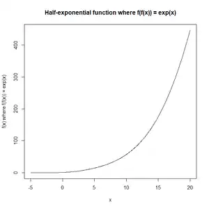 In mathematics, a half-exponential function is a functional square root of an exponential function. That is, a function such that composed with itself results in an exponential function:[1][2]
