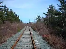 In 1993 the former H&SW trackage was abandoned west of Halifax's Lakeside Industrial Park, leaving only a 7-mile spur as the last reminder of this once important railway network in southern Nova Scotia. Called the Chester Spur in its employee timetable, CN freight operations to the Bayers Lake Industrial Park and Lakeside Industrial Park were focused on serving a cement depot, a scrap dealer and several other customers through a team track. In 2006, as part of its "Three-Year Rail Network Plan", CN declared its intention to discontinue service on the Chester Spur, this being the last remaining portion of the original H&SW trackage. The last freight trains operated on the spur west of Southwestern Junction through to the Lakeside Industrial Park in late 2007.[5] The rail corridor was purchased by the Halifax Regional Municipality and by October 2009, rails at level crossings were lifted and paved over[6] and by September 2010, all the remaining track of the CN Chester Spur had been removed and replaced by a rail trail (paved recreational pathway).