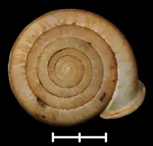 ![]() Apertural view. Scale bar is 10 mm. |