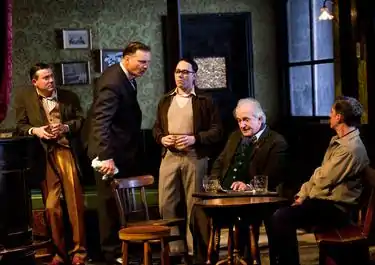 The play was scheduled to open on Broadway at the John Golden Theatre on 19 March 2020, but the run was cancelled because of the COVID-19 pandemic after thirteen previews.[24][25] In February 2022, it was announced that the play was once again scheduled to premiere at the John Golden Theatre on April 21 of that year, with previews beginning April 8. The production saw most of the 2020 cast return, with the exception of Dan Stevens as Mooney, Mark Addy as Harry and Ewen Bremner as Syd, replaced respectively by Alfie Allen, David Threlfall and Andy Nyman.[26] The production closed on June 18, 2022.[27]